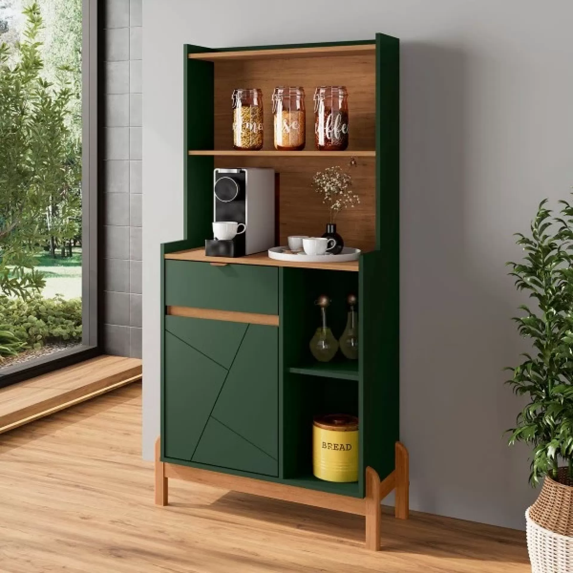 O Aparador Moderno combina elegância e funcionalidade, ideal para organizar e decorar qualquer ambiente. Produzido em MDF e MDP de alta qualidade, possui porta usinada, gaveta com corrediça telescópica e puxador de metal, além de dobradiças com sistema soft-close para maior conforto e durabilidade. Os pés em madeira maciça garantem estabilidade e resistência.