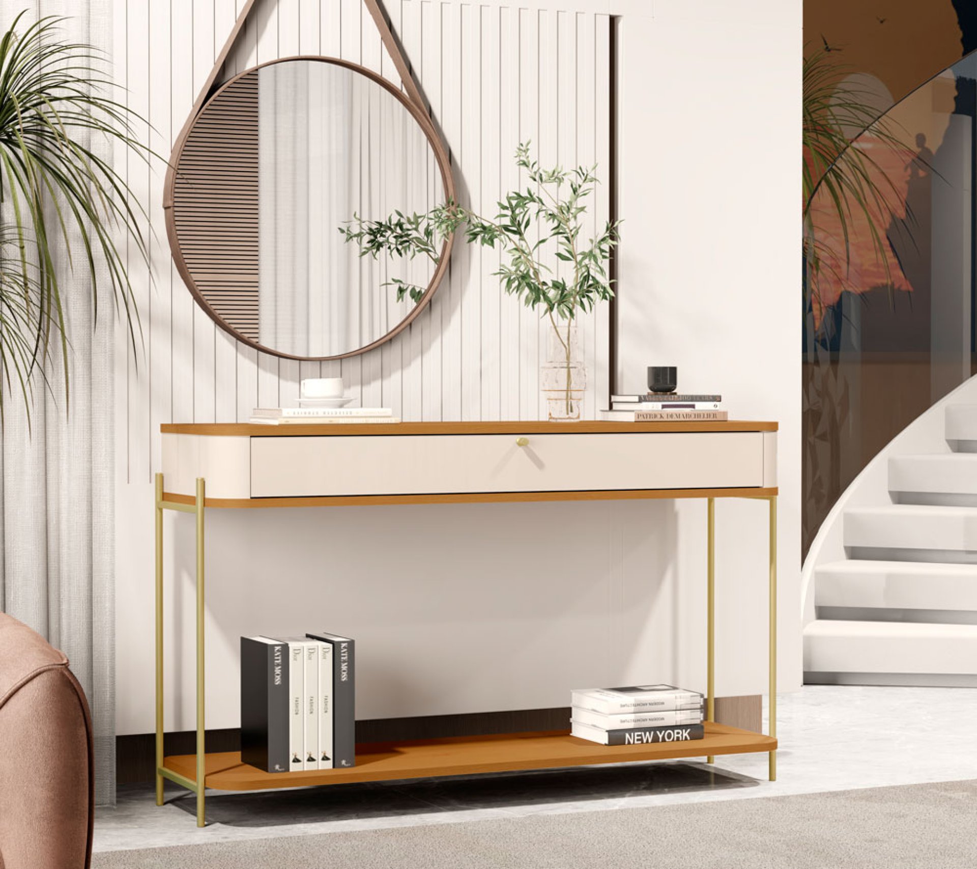 O Aparador Tucupí une design moderno e funcionalidade, com cantos arredondados exclusivos, base e tampo em MDF de 15mm, gaveta com corrediças telescópicas e portas com dobradiças. Seus pés e puxadores em metal oferecem resistência e um toque de sofisticação ao ambiente.