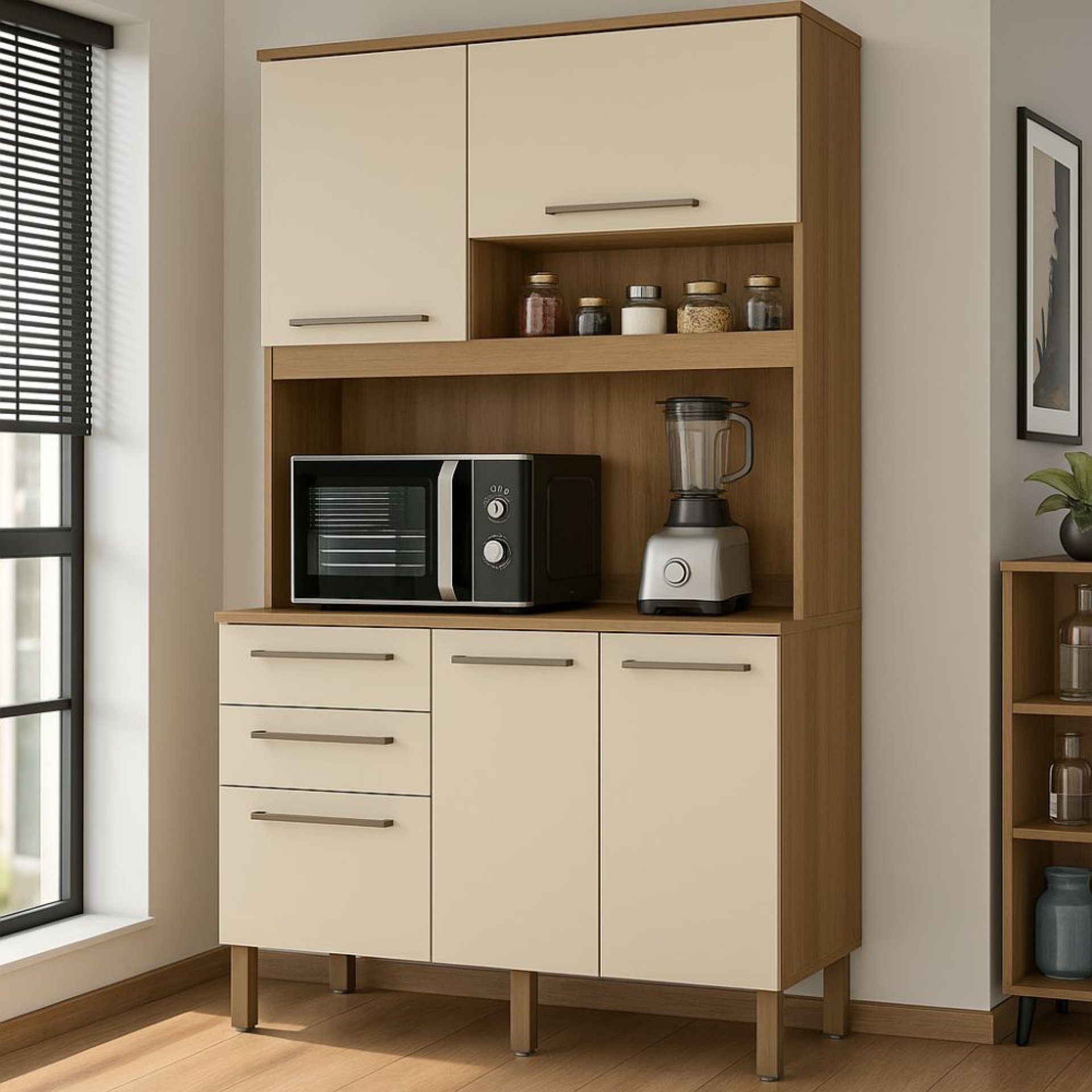 Ideal para quem busca praticidade sem abrir mão de estilo, o Kit Cozinha Prisma 1200 oferece design moderno com ripado decorativo e excelente aproveitamento de espaço. Com estrutura resistente, é perfeito para ambientes compactos, garantindo organização, beleza e funcionalidade no dia a dia.