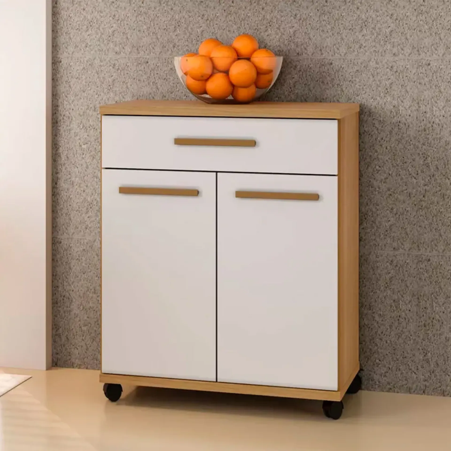 Destaque Visual: 2 portas + 1 gaveta compacto.