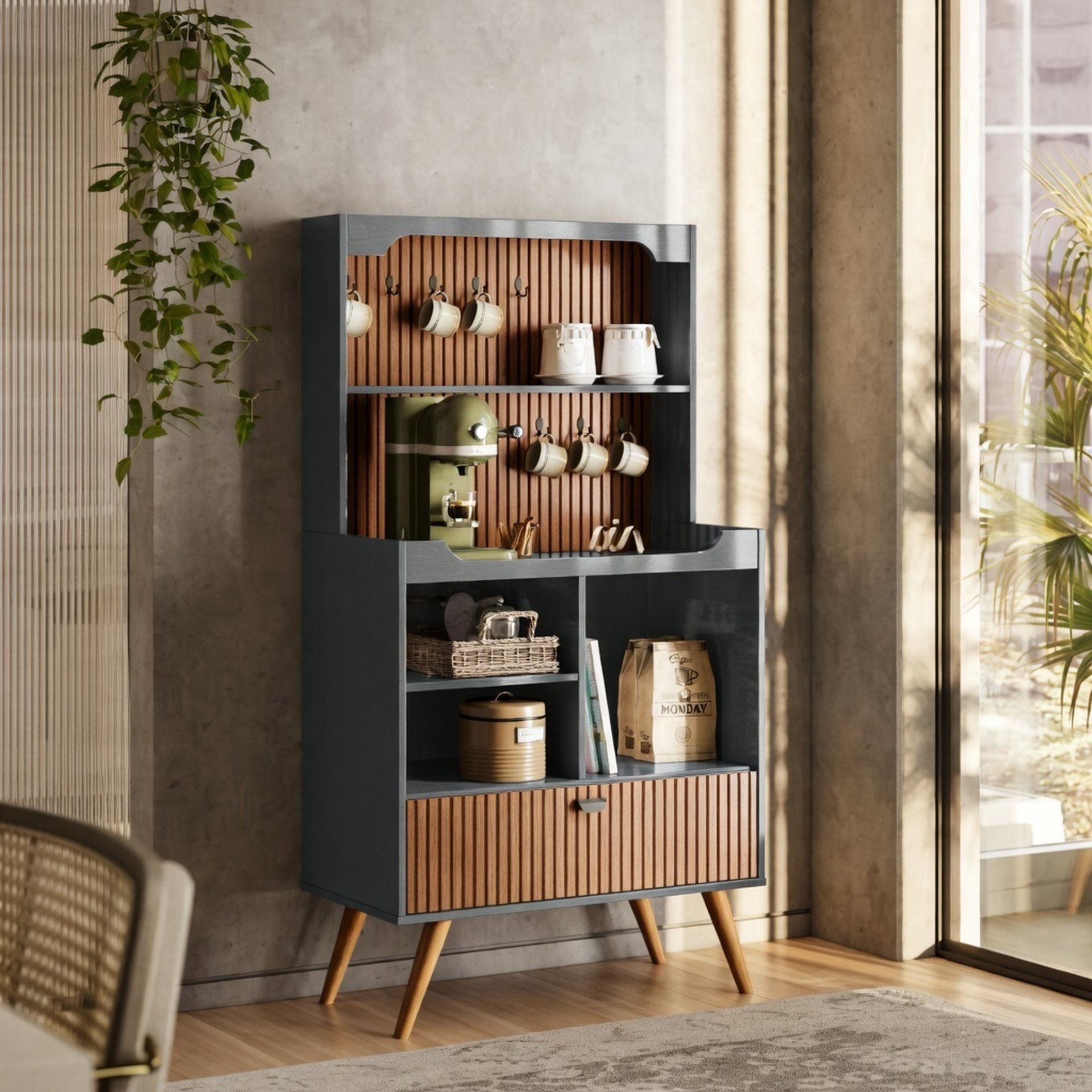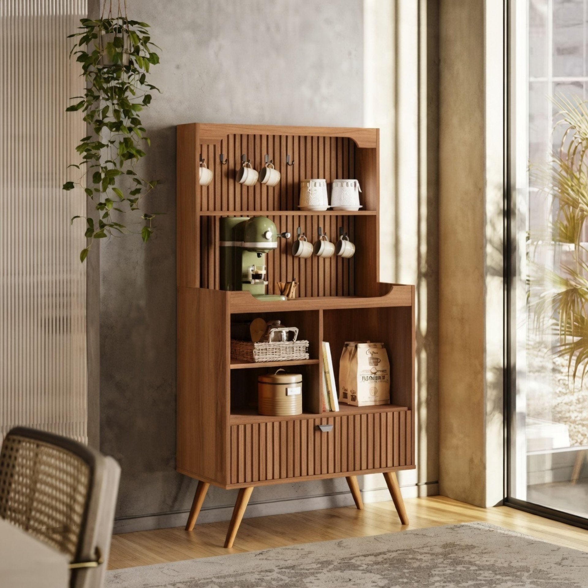 Transforme seu cantinho do café com o visual moderno e acolhedor. Portas ripadas elegantes, acabamento sofisticado e detalhes que aquecem o ambiente. Aproveite gavetas amplas, prateleiras internas e estrutura resistente para xícaras, cápsulas e acessórios. Eleve o padrão da sua cozinha ou sala. Garanta o seu agora!