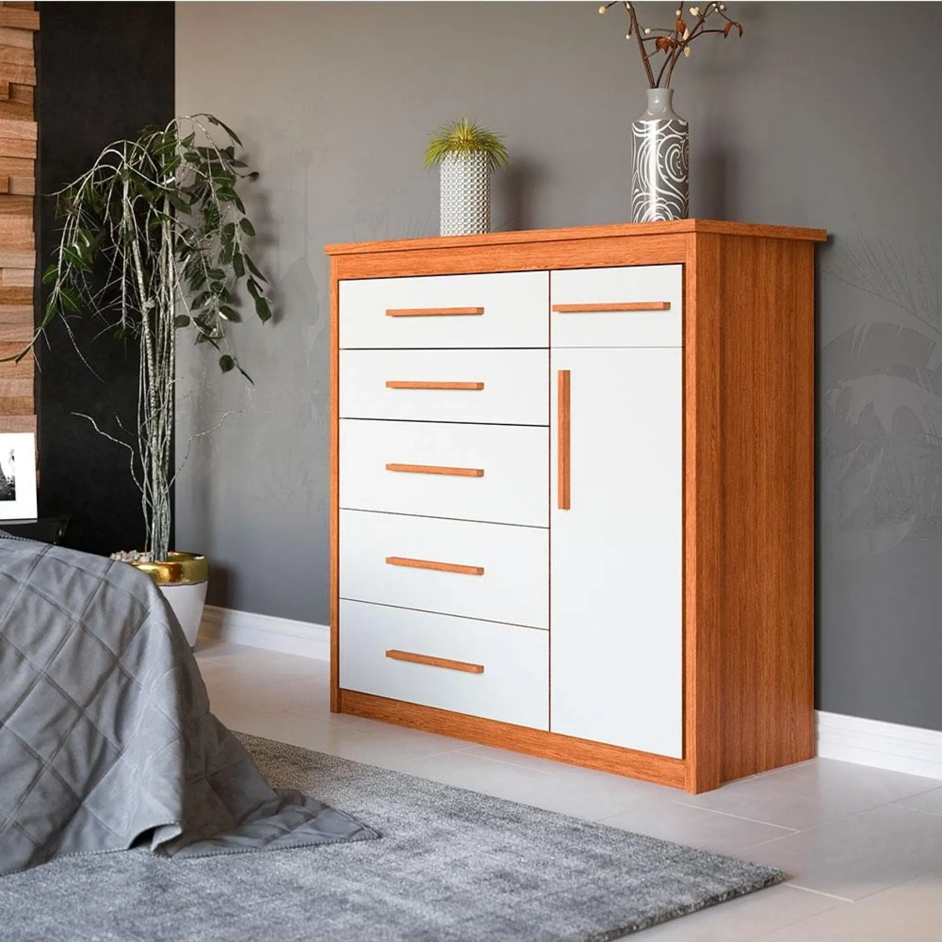 Configuração: 6 Gavetas Espaçosas + 1 Porta Lateral