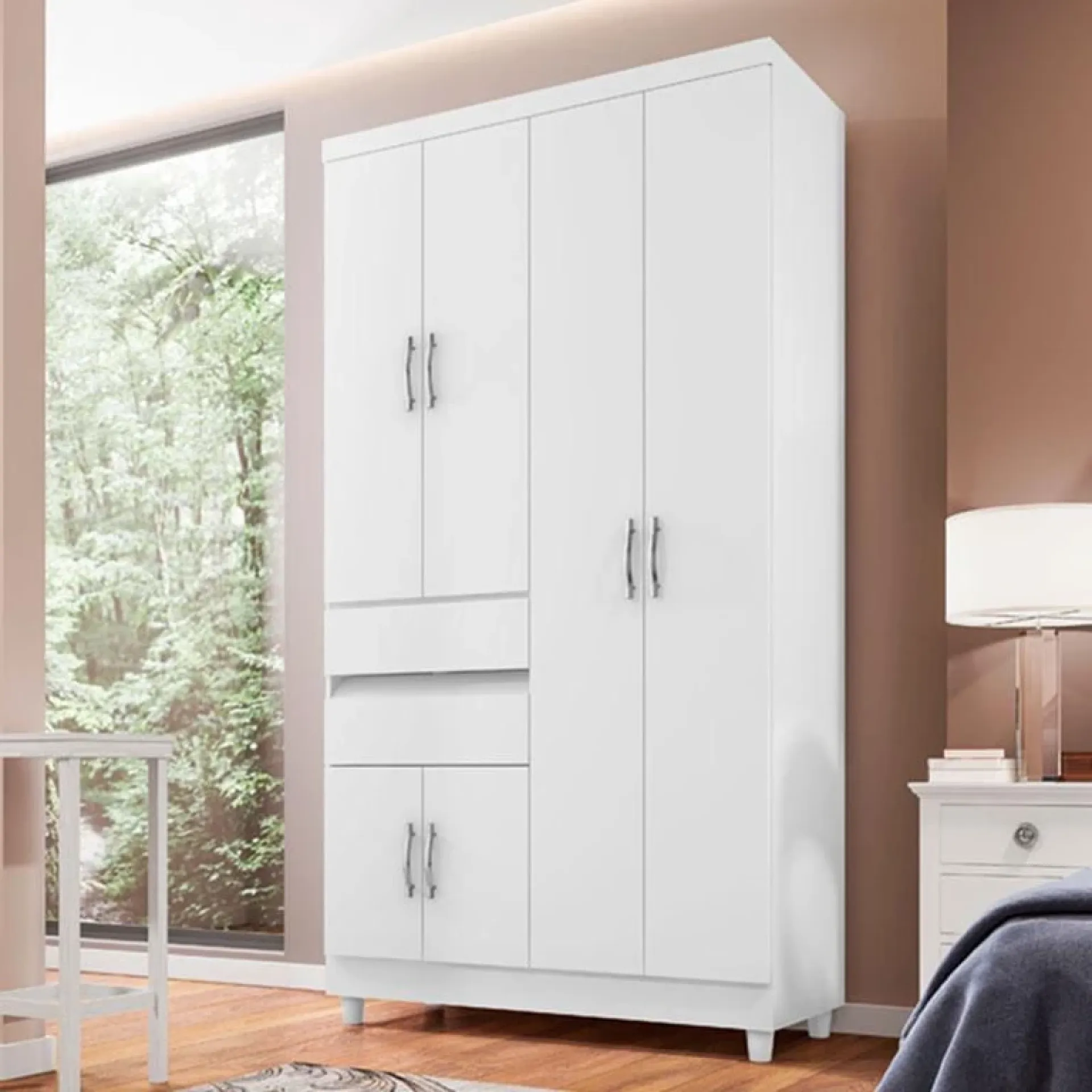 Puxadores Cromados: Detalhes que agregam elegância e modernidade ao design do guarda-roupa.