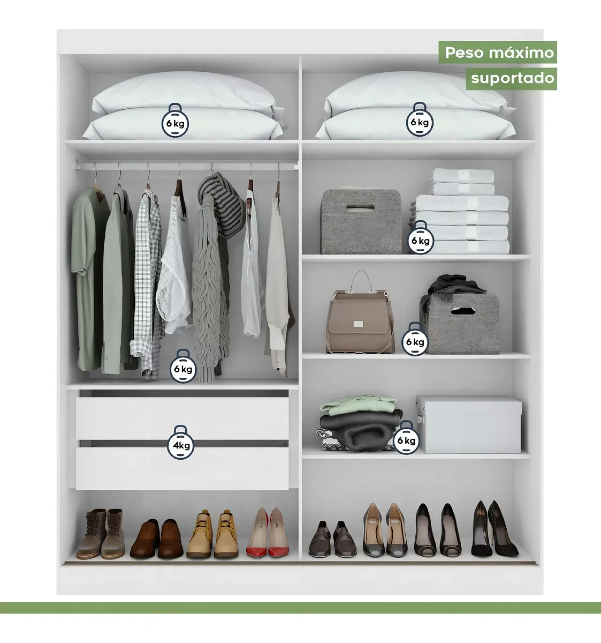 O Guarda-Roupa Zeine foi pensado para quem valoriza beleza, praticidade e funcionalidade. Com design moderno e portas de correr, ele otimiza o espaço do seu quarto, mantendo tudo organizado e acessível.
