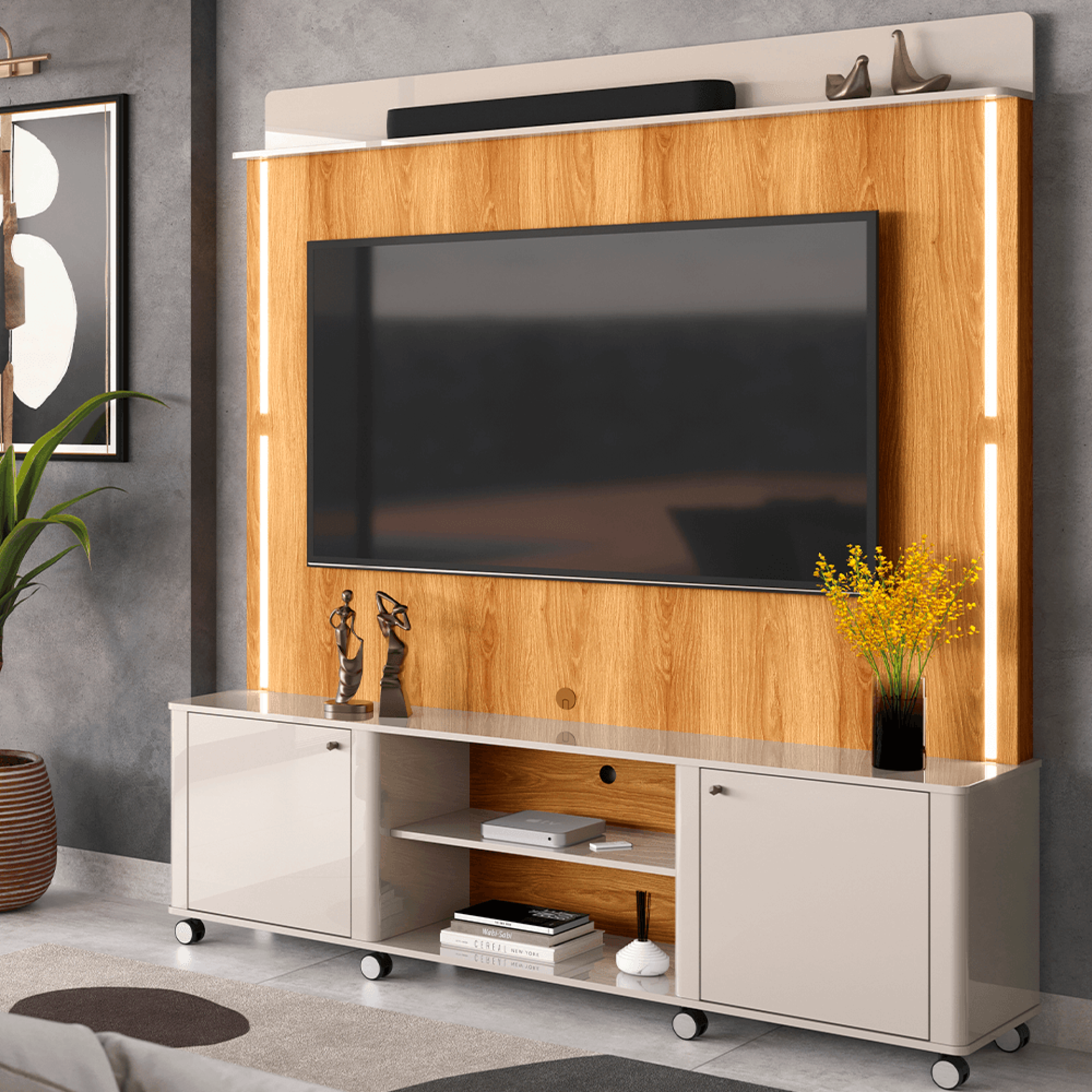 Ideal para quem valoriza um ambiente bem decorado, este home para sala com LED oferece o que há de mais atual no design de interiores. Aproveite e renove seu espaço com mais estilo e conforto!