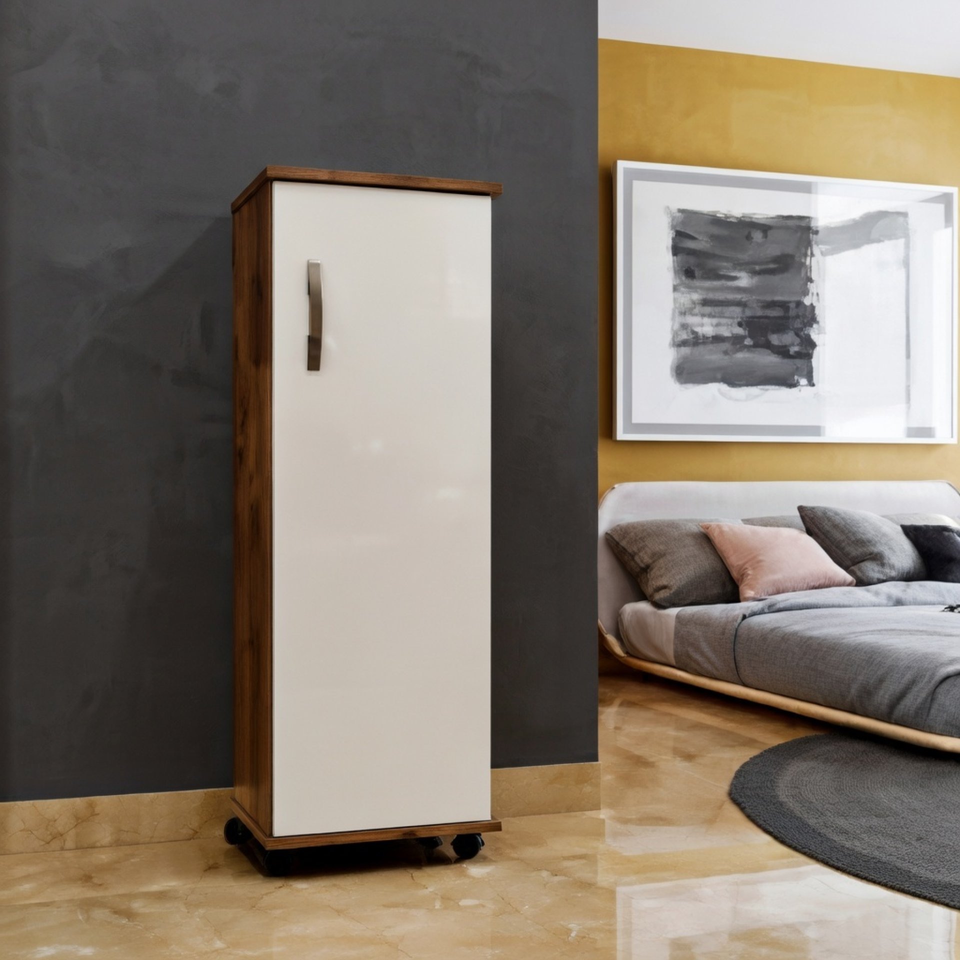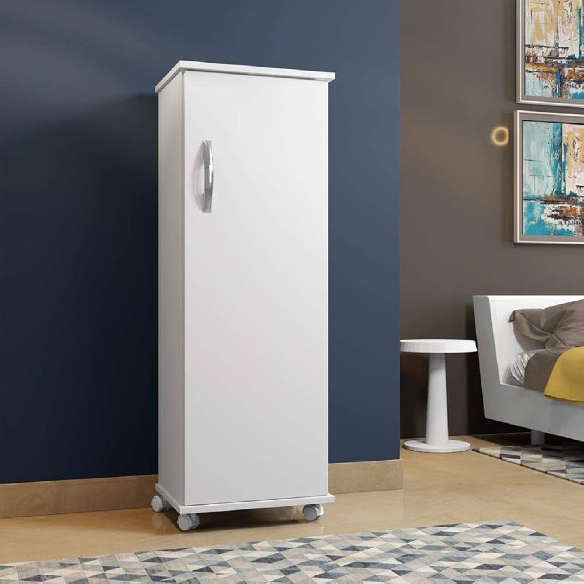 Armário Organizador Multiuso com Rodízios – 1 Porta e 4 Prateleiras