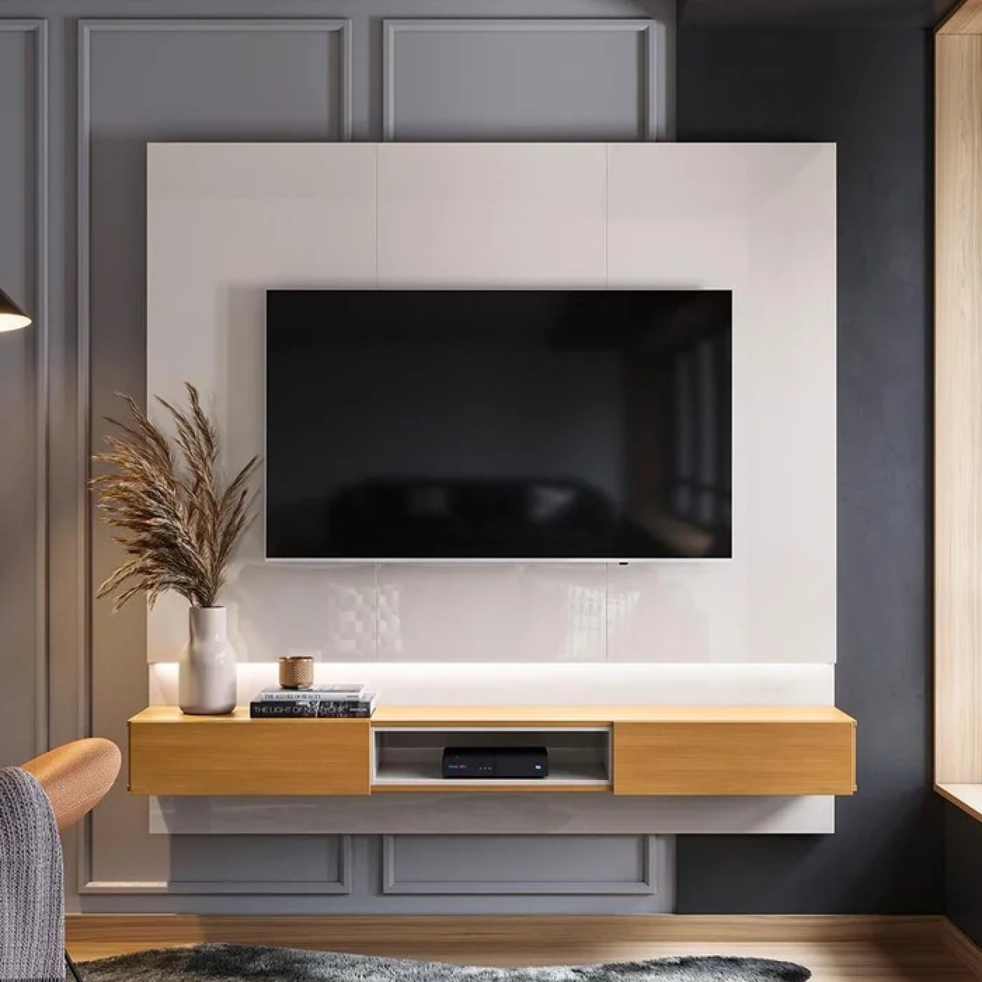✔️ Iluminação em fita de LED embutida – destaque para sua decoração