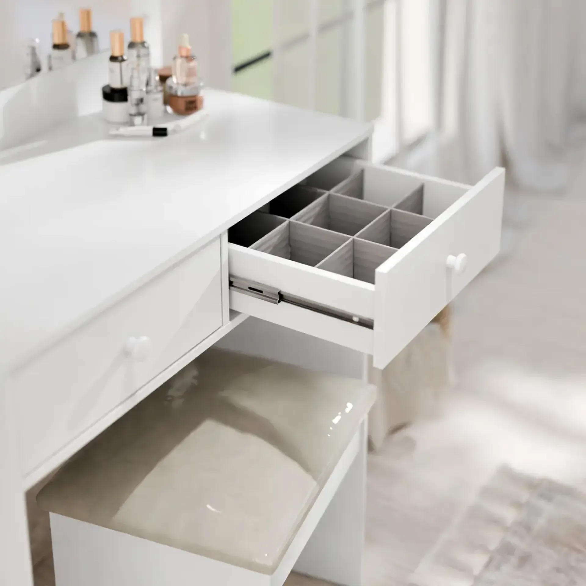 Deixe seu ambiente mais organizado com uma penteadeira moderna, funcional e elegante. Perfeita para otimizar seu espaço com praticidade.