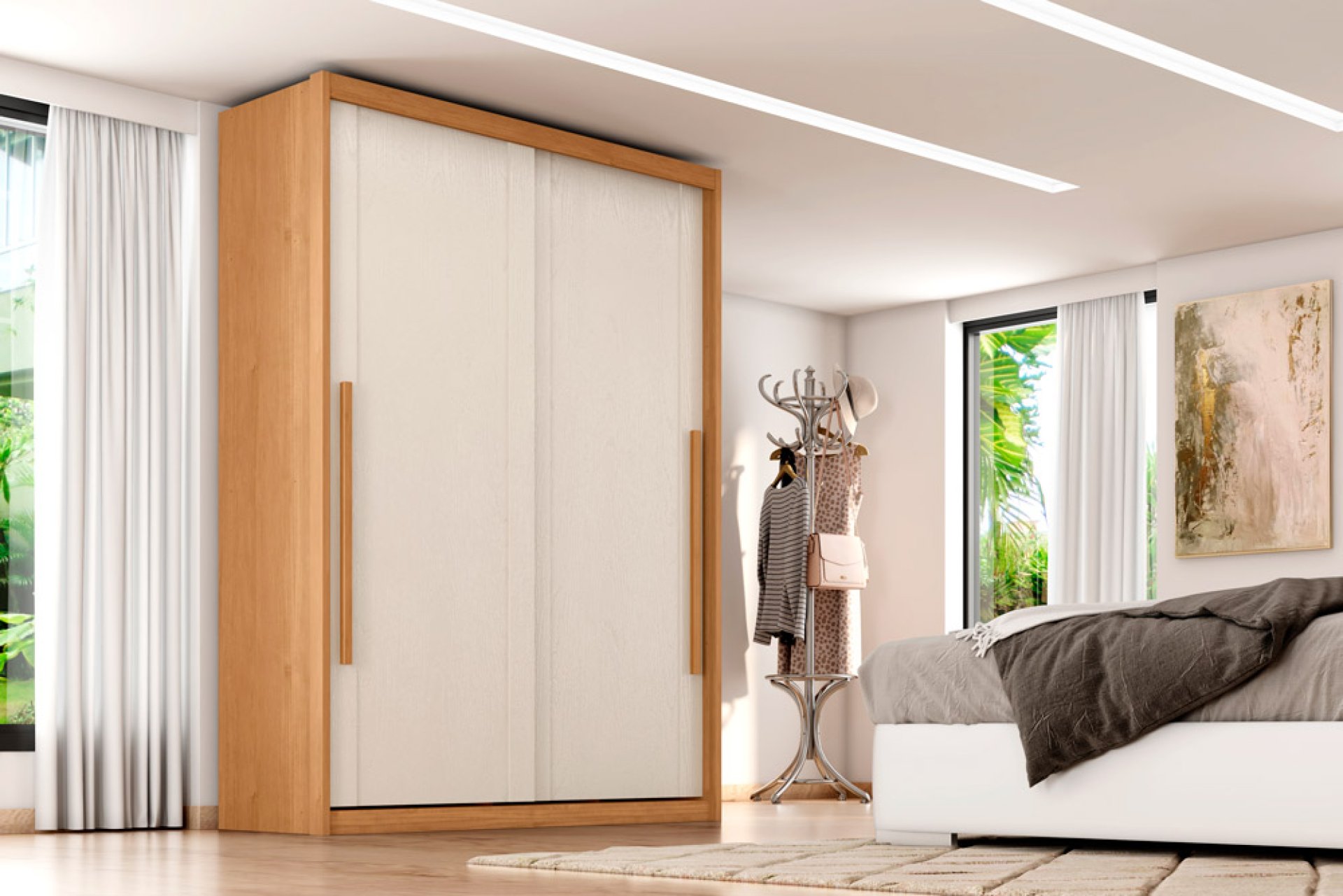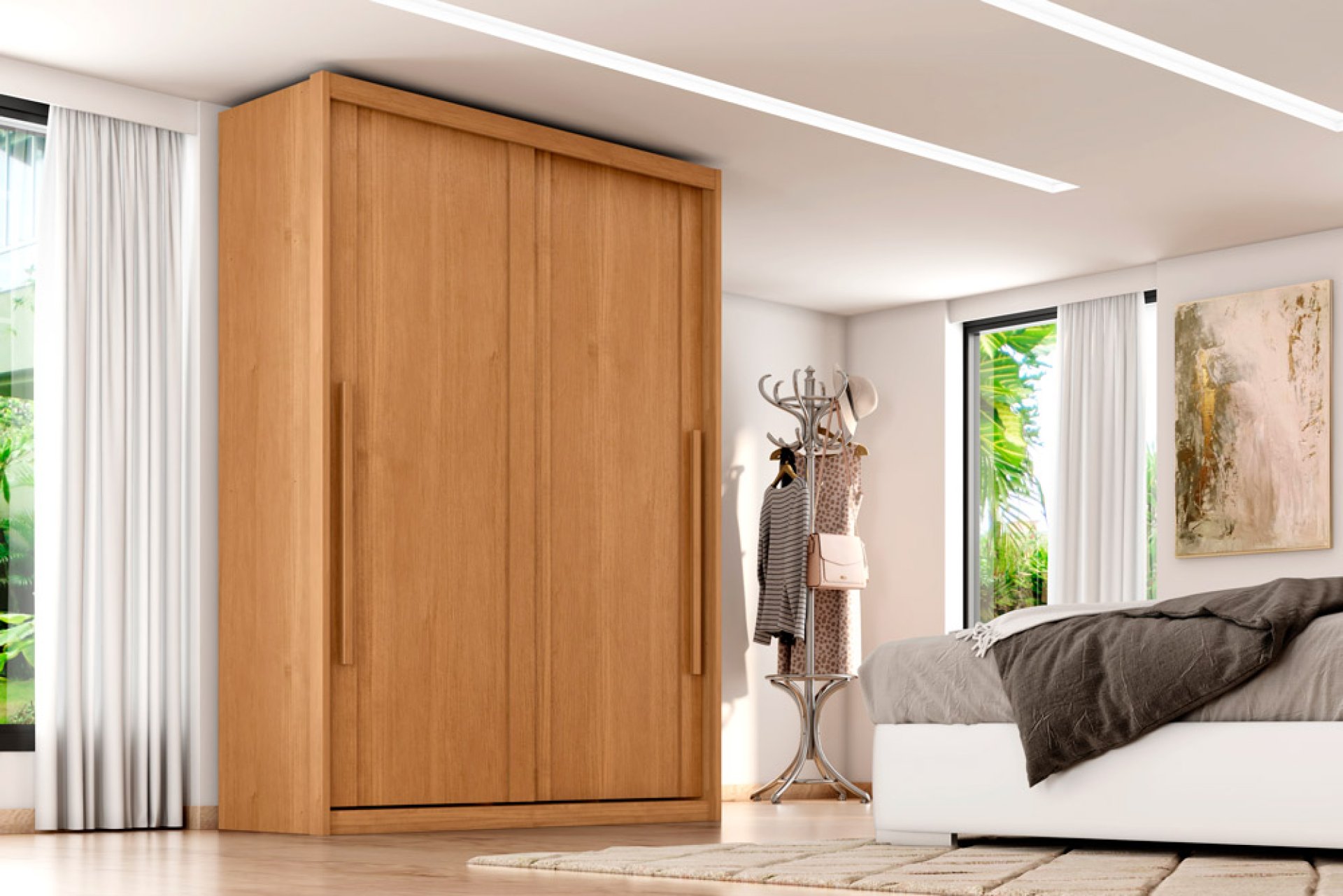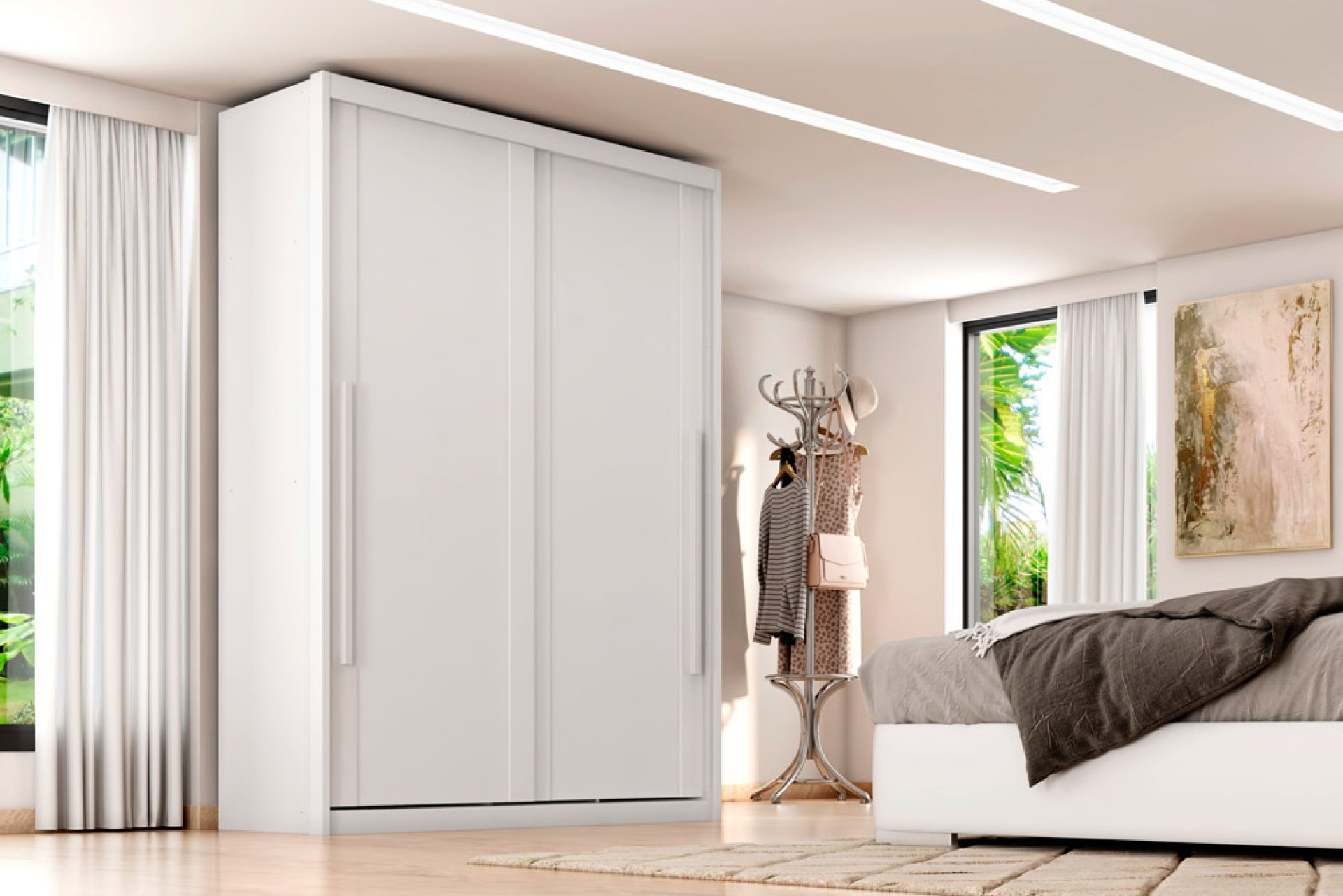 O Guarda-Roupa Splendido é um guarda-roupa solteiro grande que conta com estrutura 100% em MDF, 2 portas de correr com sistema de rolamento e freio, e acabamento interno igual ao externo. Possui 3 gavetas com corrediças telescópicas, 7 prateleiras, cabideiro e calceiro metálico, garantindo ótima organização e durabilidade.