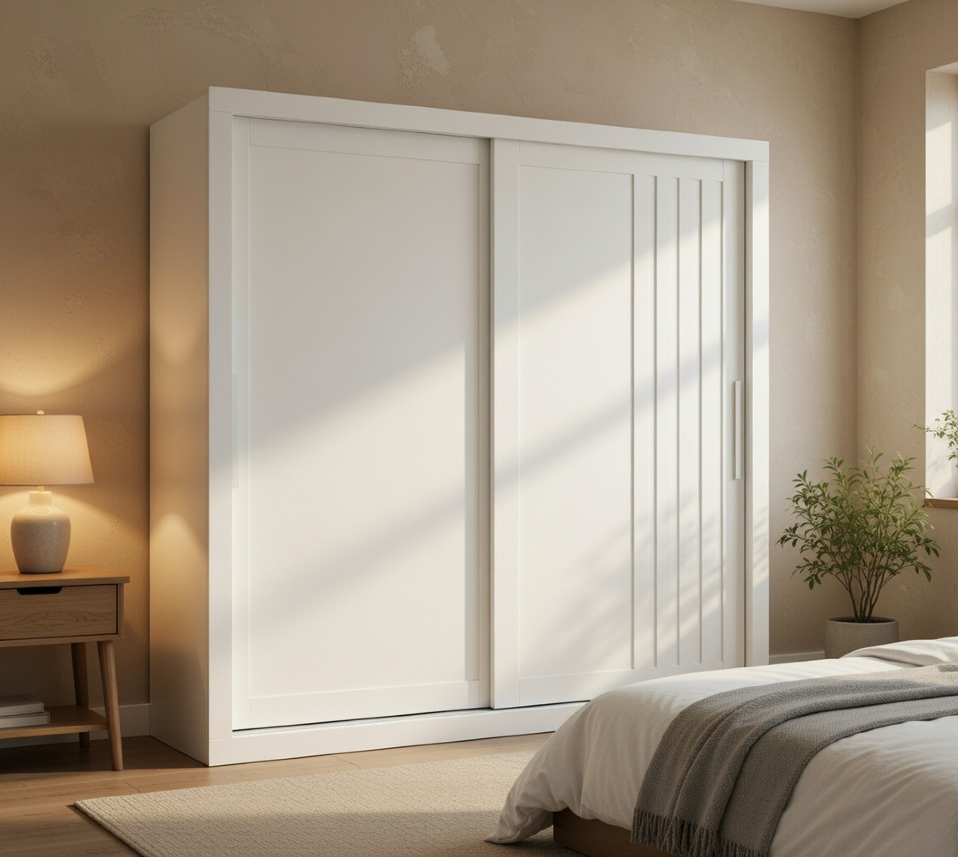 Uma peça essencial para organizar e elevar o estilo do seu quarto. Composto por duas portas de correr, este guarda-roupa foi projetado internamente com múltiplas repartições, proporcionando um espaço otimizado para armazenar roupas, objetos e sapatos de forma prática e eficiente.